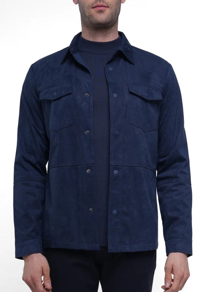Shirt Jacket.Riley suede full snap buttoned shirt jacket with double pockets.93% Polyester, 7% Elastane.