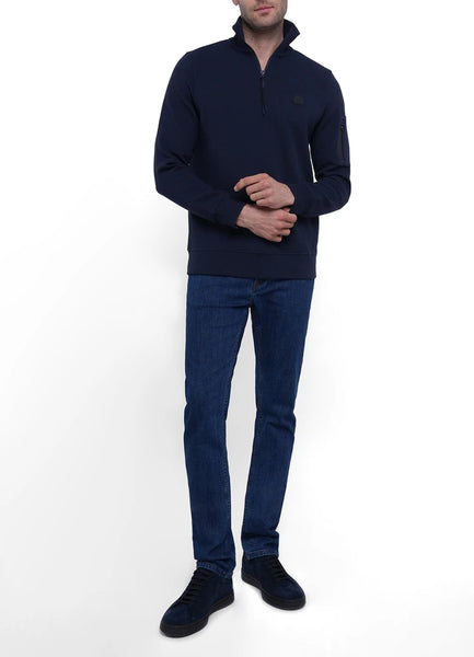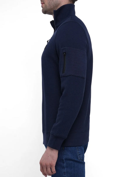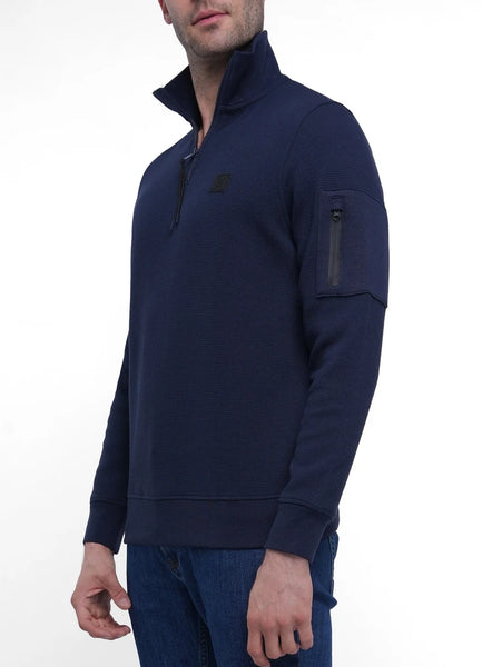 Sweatshirt.Halfar waffle gauffre half zip sweatshirt with zipped pocket on left arm featuring Maison Brown square rubber badge on chest.62% Polyester, 34% Cotton, 4% Elastane.