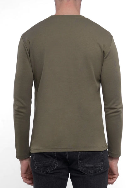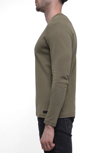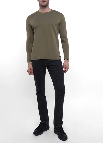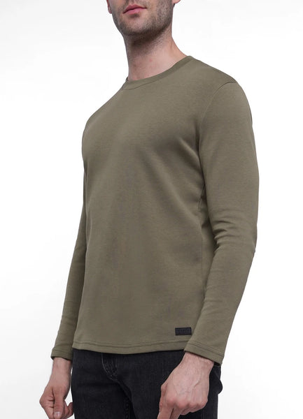 Plain thick cotton t-shirt with rectangular Maison Brown rubber badge on bottom.
