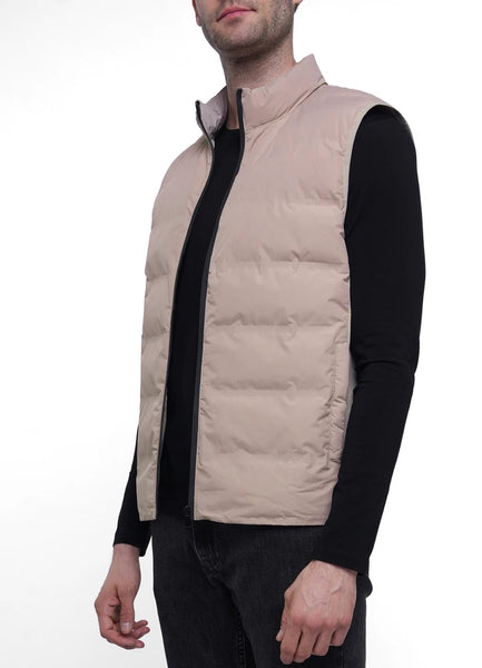 Bimaterial front quilted nylon full scuba zipped vest with back rayon.