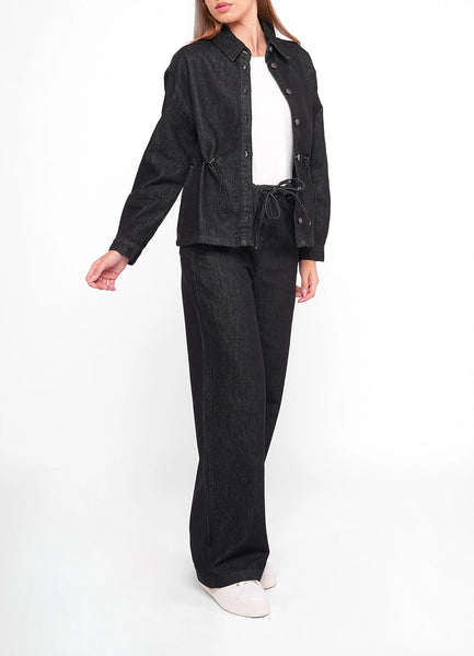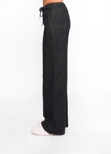 High-waist wide leg jeans with an adjustable drawstring elasticated waistban with front welt pockets and patch pockets on the back