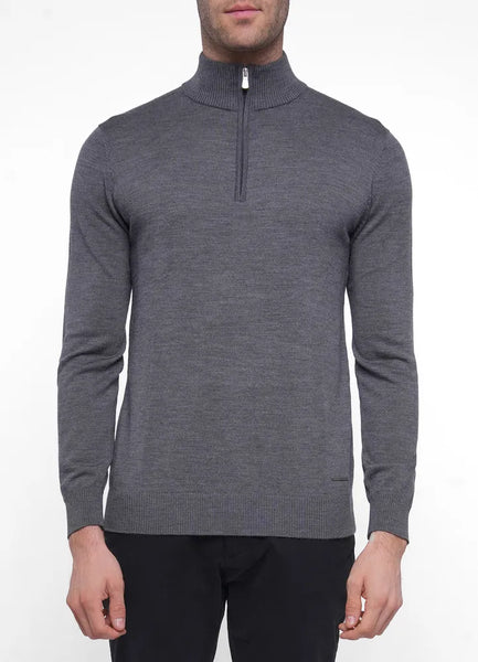 Knitwear.Lux half zip knitted merino wool sweater.100% Merino Wool.