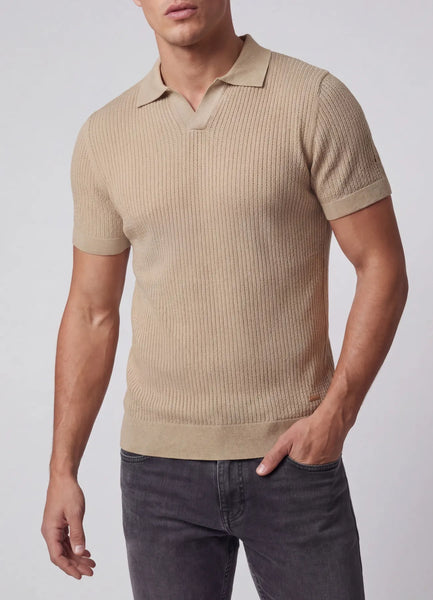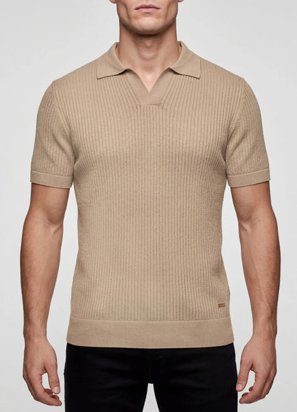 Short sleeve ribbed knitted v-neck poloshirt.