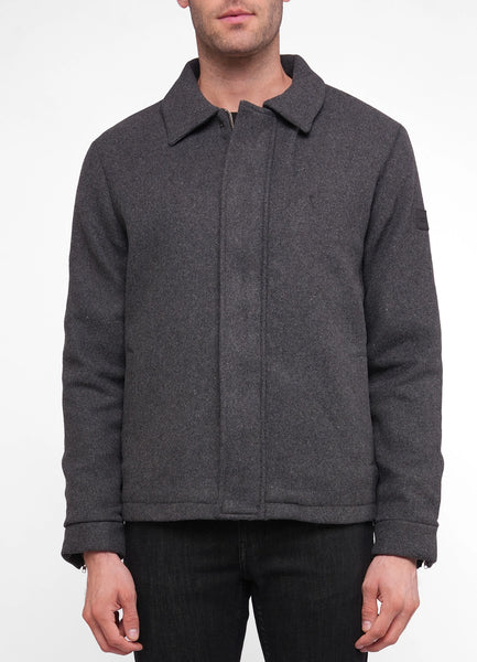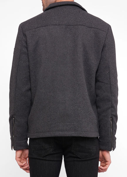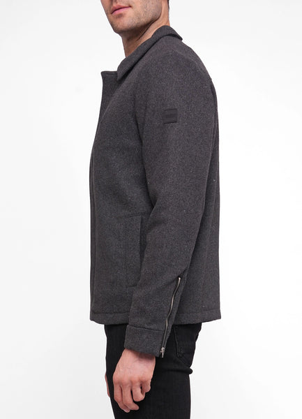 Wool mix full zip short jacket with collar and pockets featuring zip contrast on arms.
