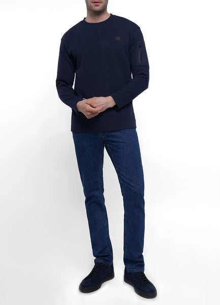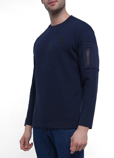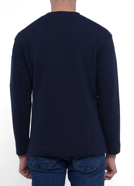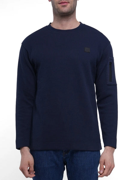 Sweatshirt.Sundvis waffle gauffre crewneck sweatshirt with zipped pocket on left arm featuring Maison Brown square rubber badge on chest.62% Polyester, 34% Cotton, 4% Elastane.