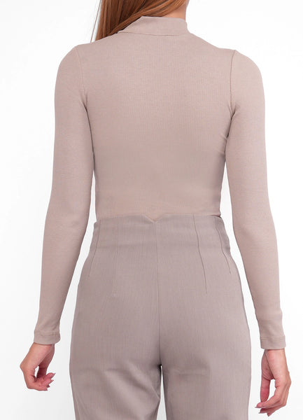 High neck long sleeve ribbed t-shirt with side cut on one shoulder