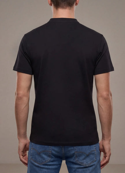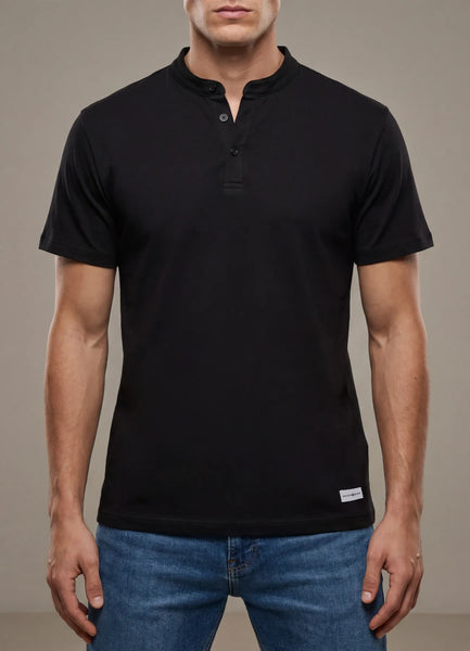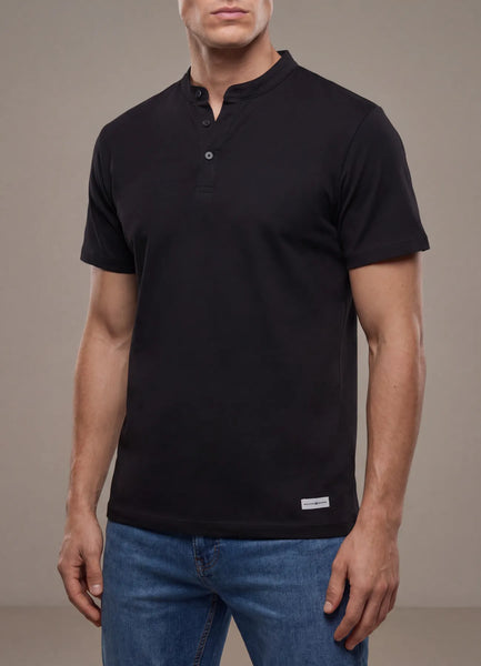 T-Shirt SS.Slub plain henley short sleeve t-shirt with Maison Brown white woven on bottom.100% Cotton.