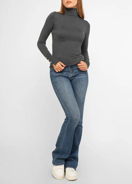 Long sleeves, turtle neck basic knitwear featuring buttons on sleeves.