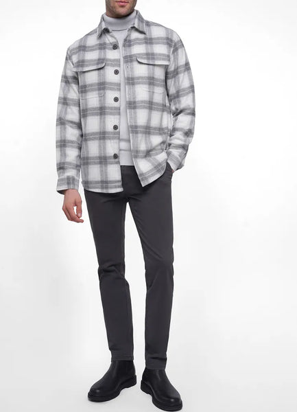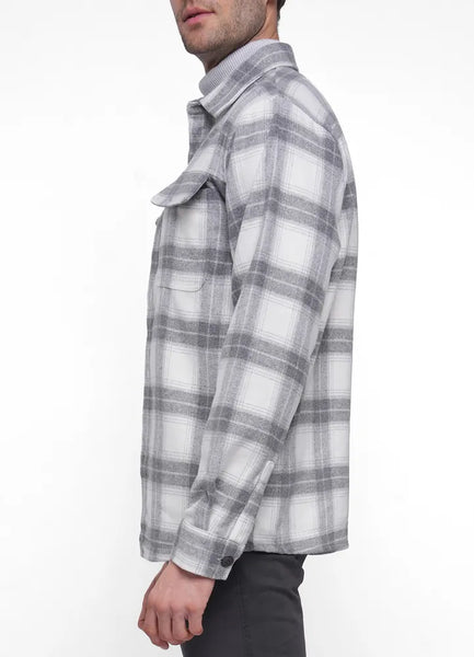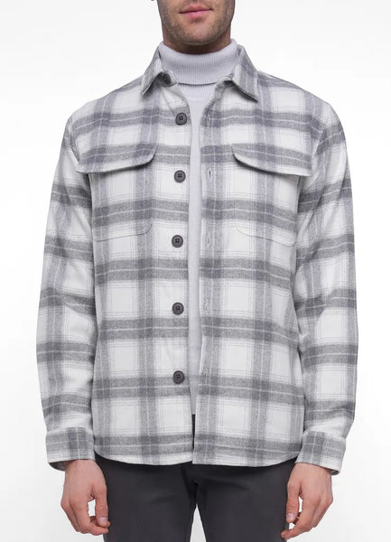 Shirt Jacket.August checked flannel buttoned shirt jacket with double pockets.45% Acrylic, 30% Polyester, 20% Wool, 5% Cotton.