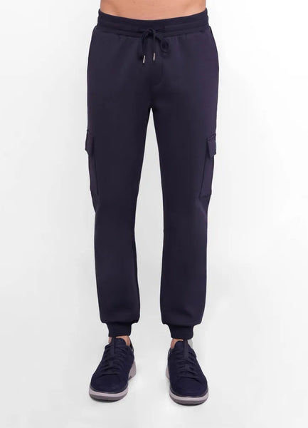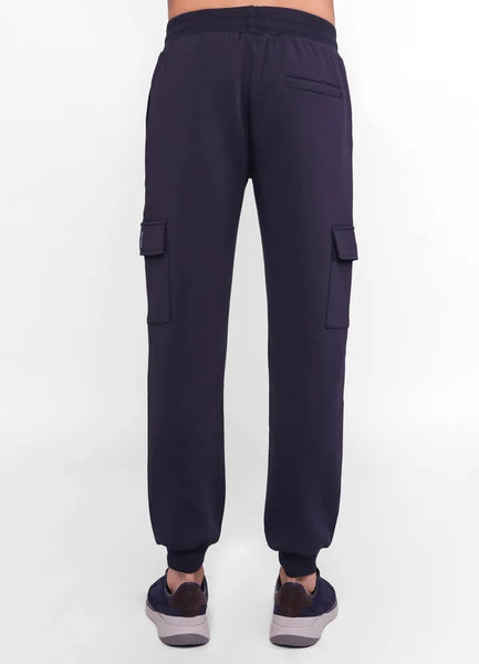 Drawstring cargo sweat pants with side pockets and Maison Brown vinyl logo on pocket.