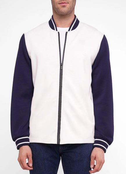 Baseball full zip sweatshirt with contrast collar and sleeves.