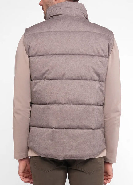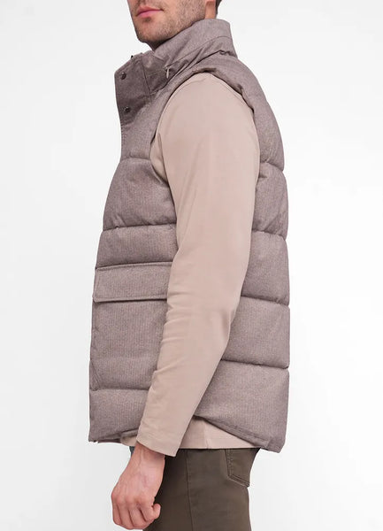 Ejno puffed quilted tonal small herringbone nylon bodywarmer with double pockets.